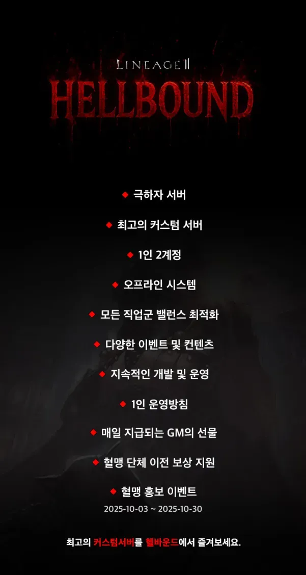 ⭐ 리니지2헬바운드서버 2025년10월3일 - 10월30 혈맹홍보이벤트 ⭐
