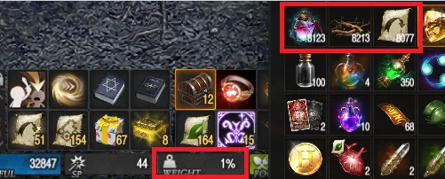 무게 영향이 없으므로 최대한 많이 사서 사냥을 다니면 귀환을 적게 할 수 있음