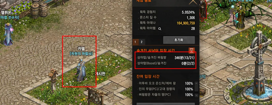 반드시 숨겨진 사냥터도 사용하길 권장